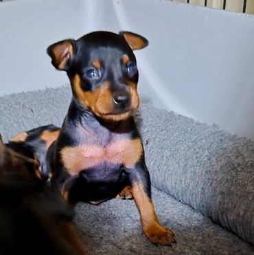 I would not recommend a Min Pin puppy for a household with infants or toddlers. Households with young children should consider a larger dog that can withstand the knocks of childhood. Min Pin puppies are very small (2 lbs. @ 8 weeks old) and can be seriously injured by rough treatment. Not only physically but mentally as well.